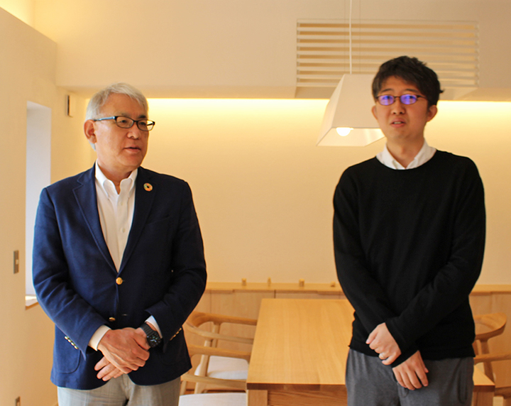 小松氏と須貝氏が出会ったのは5年ほど前。以来、小松氏は須貝氏が設計する家に注目してきたという。新しいモデルハウスを作るにあたって須貝氏に声をかけたのは、「ずっと自社設計でやってきたがパターン化しているように感じ、そこから抜け出したかった」と明かす。
