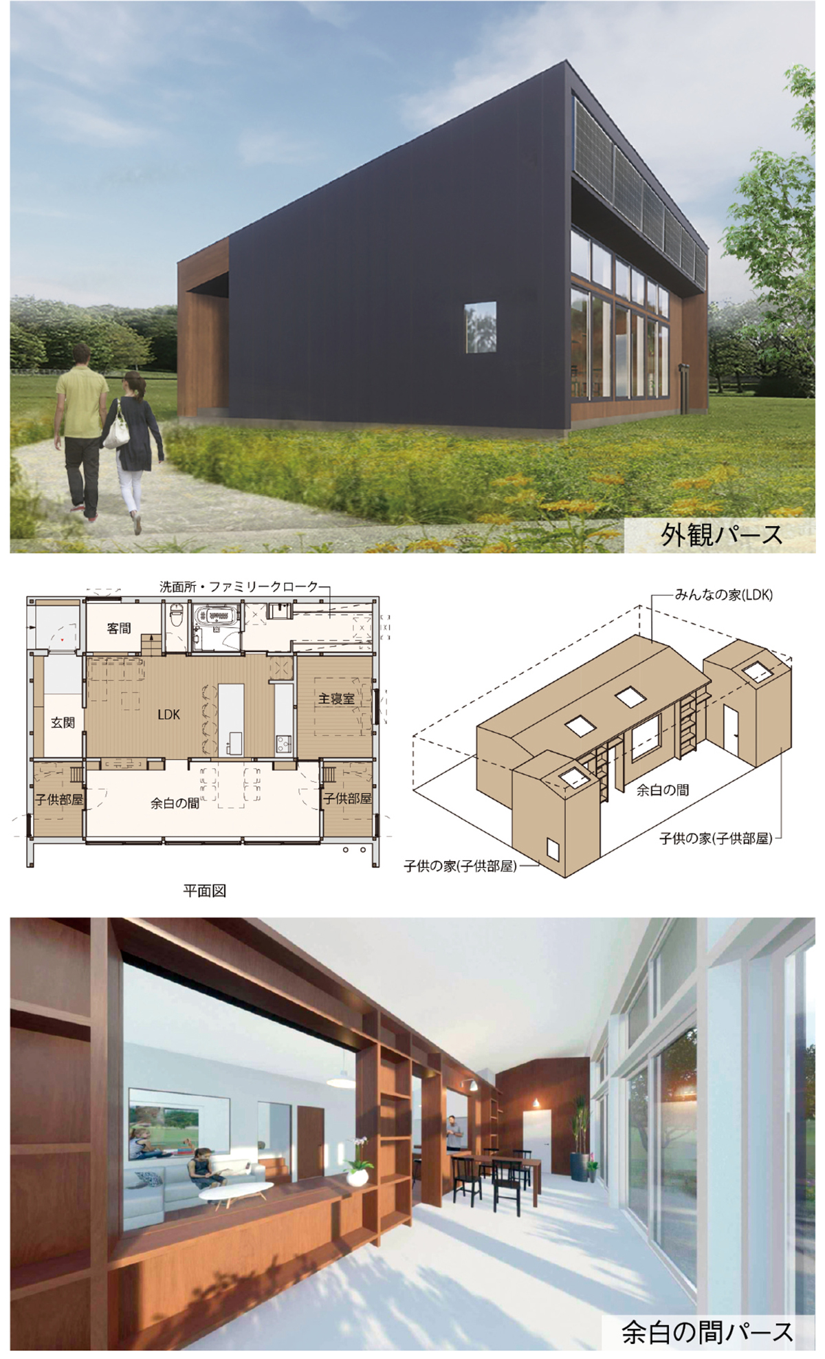 ロフト付の二つの「子どもの家」、LDKによる「みんなの家」、その三つの家に囲まれた「余白の間」。子育て世帯を想定し、住人の個性が引き立つようにと設計されたユニークな住宅は、どう生まれたのか。
