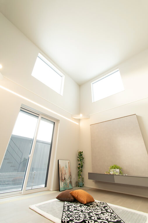 • 大きな吹き抜けと高窓の開放的な住まい